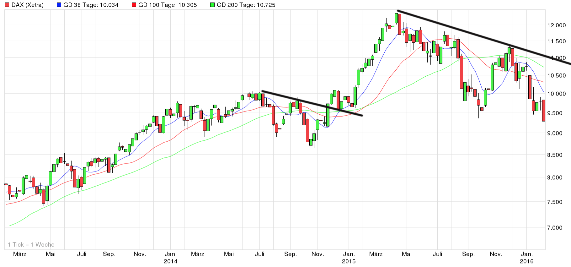 Im April 2015 markierte der DAX einen Rekordstand von fast 12.400 Zählern. Zehn Monate später steht der bekannte Börsenindex bei 9.300 Punkten. Das entspricht einem Minus von 25 %. Insbesondere in den vergangenen acht Wochen ging es steil bergab.