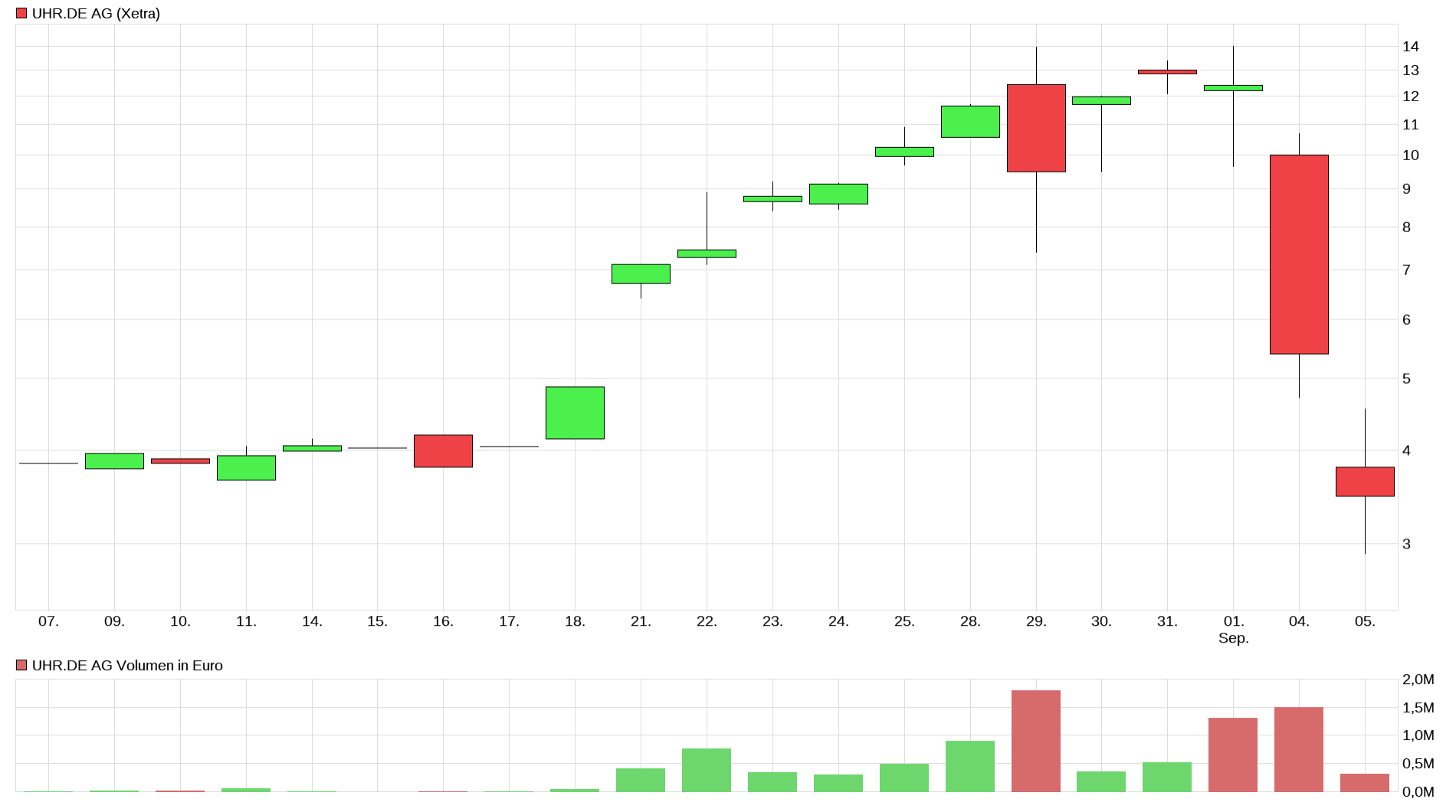 Uhr.de Aktie fällt um knapp 75% in zwei Handelstagen